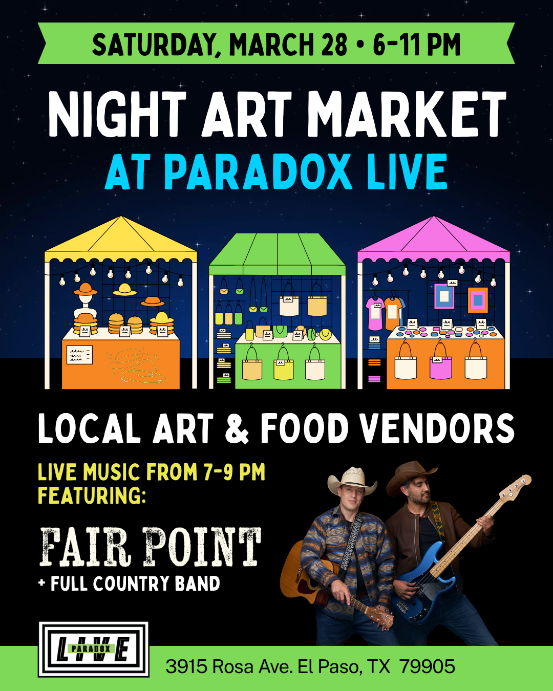 Night Art Market at Paradox Live featuring Fair Point + Full Country Band